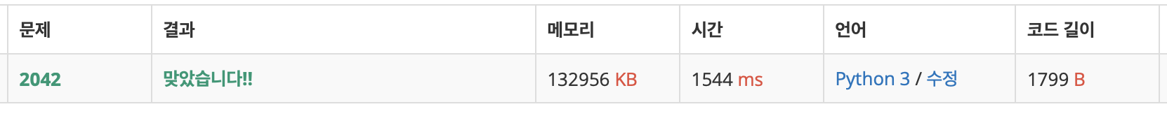 2042번 문제의 전체 코드는 아래와 같다.