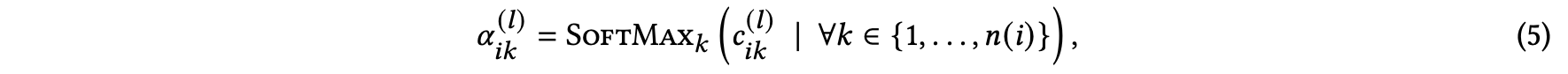 즉, attention score $c^{(l)}_{ik}$에 대한 softmax라고 보면 됩니다.