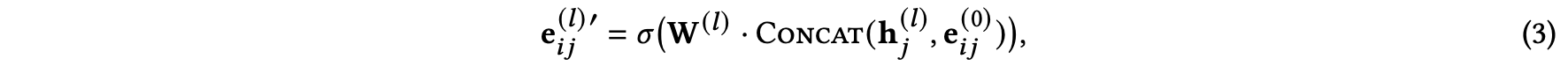 (b) concatenation opertaion, $e^{(l)}_{ij} = CONCAT(e^{(0)}_{ij}, e^{(0)}_{ij, CA})$