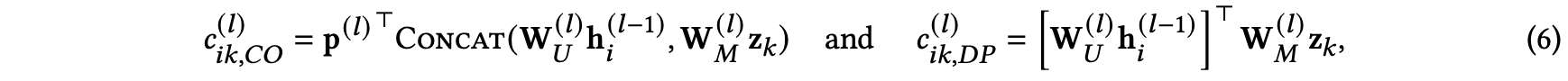 2) attention coefficients를 계산할 때 사용 : $W^{(l)}_U, W^{(l)}_M, p^{(l)}$