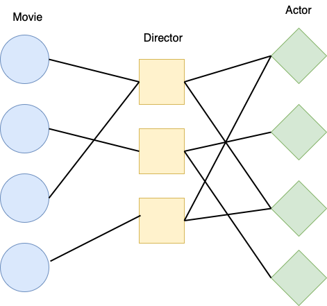 노드는 영화, 감독, 배우로 종류가 여러개가 되겠죠?