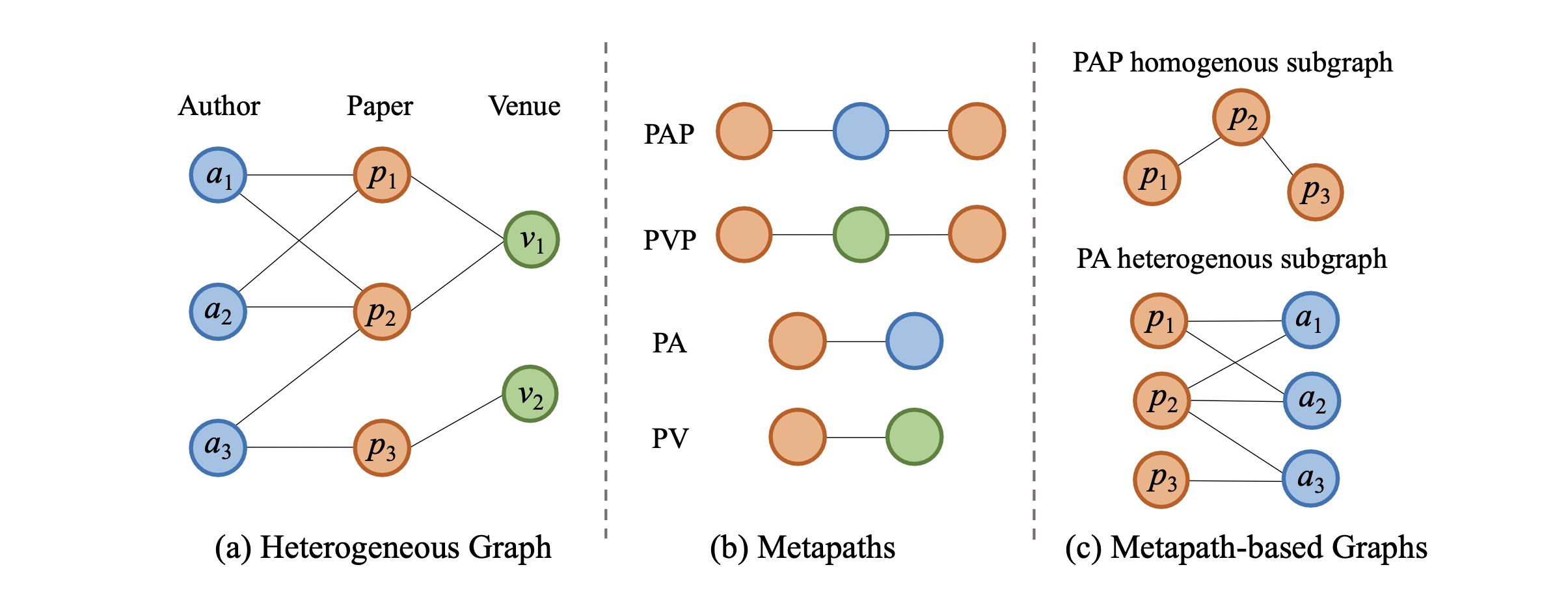 위 Figure1에서 그림 (c)을 보면 PAP 타입의 metapath로 homogeneous subgraph를 구성한 예제가 있습니다.